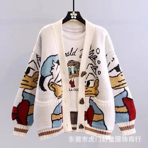2022秋冬季韩版女装开衫毛衣慵懒风加厚女式毛衣库...