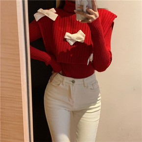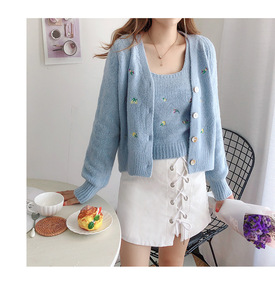 两件套针织开衫秋冬新款吊带毛衣女刺绣韩版修身甜美学...
