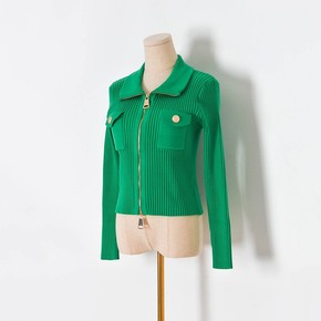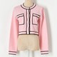 S10325春新款双口袋圆领长袖短款针织衫开衫女式...