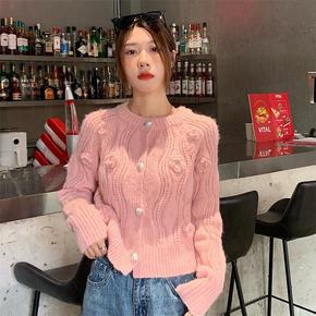 韩系甜美毛衣外套女秋冬2022新款宽松外搭单排扣针...