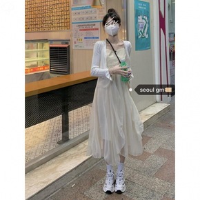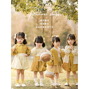 女童田园风套装春款甜美蝴蝶结外套半身裙束脚花边背带...