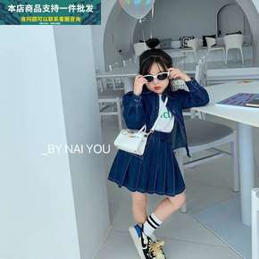 女童春装牛仔套装洋气两件套牛仔外套学院风百褶裙韩版...