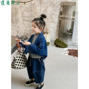 女童牛仔套装网红新款春装儿童韩版外套童装男女宝宝哈...