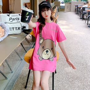女童中长款个性t恤夏装韩版中大童宽松上衣儿童短袖篮...