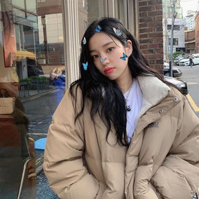 韩国whoau同款羽绒服2022新款两面穿羊羔毛外...