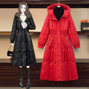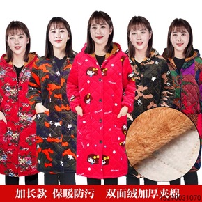加绒加棉加厚羽绒服罩衣成人女加长款过膝冬季长袖工作...