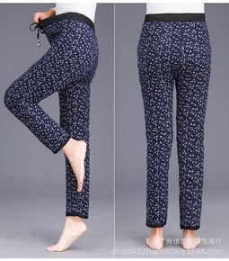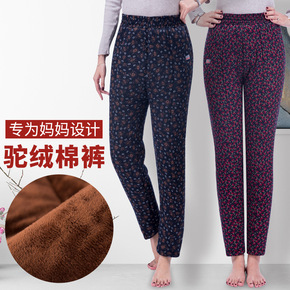 秋冬季女式棉裤保暖妈妈裤子银狐绒花裤松紧腰系带可外...