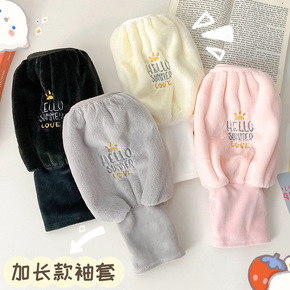 卡通长款冬季羽绒服外套防污袖套少女心绒布刺绣防脏袖...