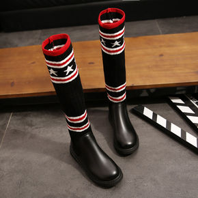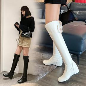 过膝长靴子女秋冬季内增高单靴蝴蝶结甜美坡跟瘦瘦靴高...