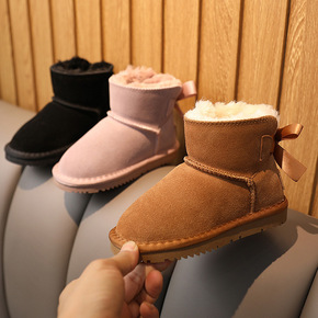 时尚儿童雪地靴女皮毛一体棉鞋男宝宝小中大童鞋加绒加...