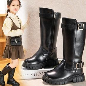 季新款加绒保暖黑色女儿童鞋时尚代扣防滑侧拉链高筒皮...