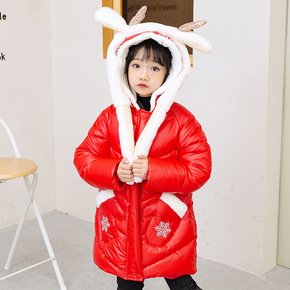 女童冬季加棉加厚保暖鹿角棉衣2021新款儿童免洗羽...