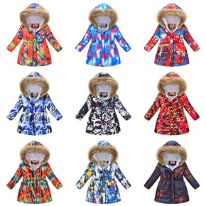 冬款新款女童带毛领棉衣儿童加厚中大童彩色中长款加厚...