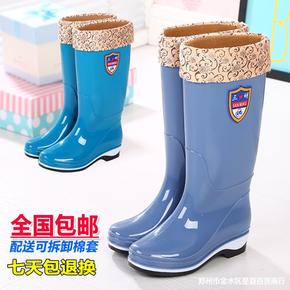 冬季新品时尚高筒棉雨鞋女士加绒雨靴牛筋防滑水靴甜美...