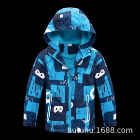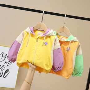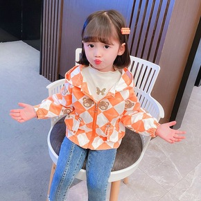 新品儿童外套秋装2021女童拼色印花风衣中大童外套...