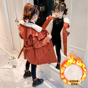 童装2020冬季新款纯色收腰女童加绒风衣中大童外套...