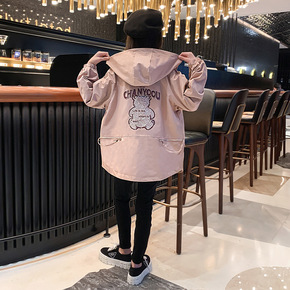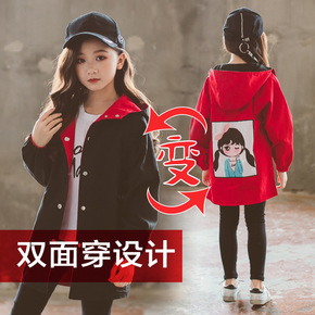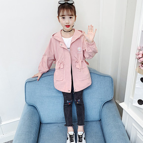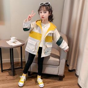 2020新款童装女童休闲外套秋款中大童连帽风衣加长...