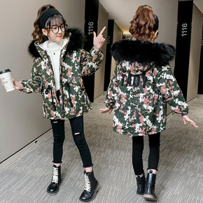 2020冬款品牌儿童装洋气大毛领女童夹棉外套中大童...