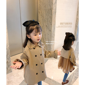 秋季童装女春秋款外套女童2021春季新款风衣中长款...