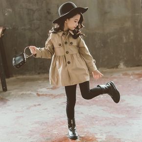 韩国女童纯色双排扣风衣秋款2021年新款外套亚马逊...