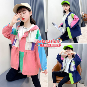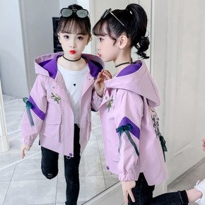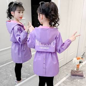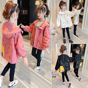 童装女童连帽外套2021秋新款中大童学生风衣儿童春...