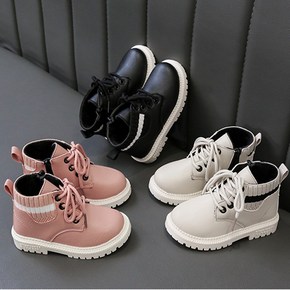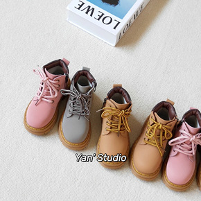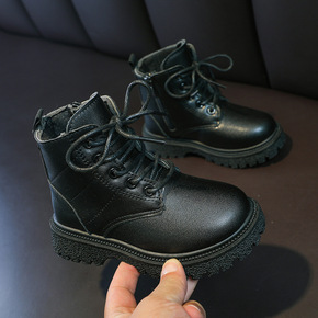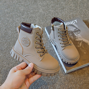 2019秋季新款儿童马丁靴加棉保暖低筒系带短靴批发...