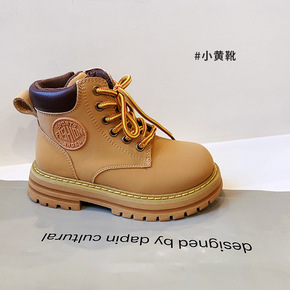 儿童登山大黄靴2022年春新款厚底英伦风女孩短靴子...