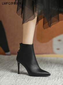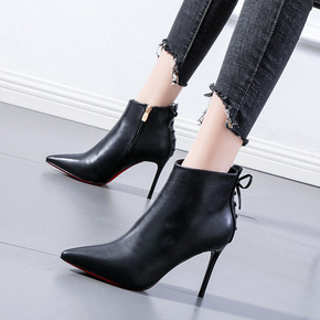 法式少女蝴蝶结细跟短靴网红尖头韩版20冬季新款高跟...