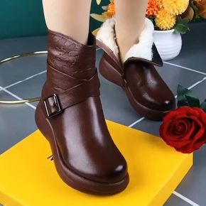 wish新款雪地靴女生平跟韩版马丁靴冬季加棉短靴女...