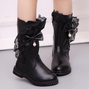 女童高跟靴子2022新款爱莎公主靴儿童骑士雪地靴女...