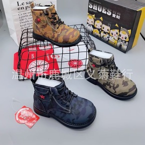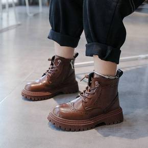 儿童马丁靴2021冬季新款韩版男童薄绒保暖小皮靴女...
