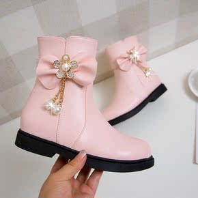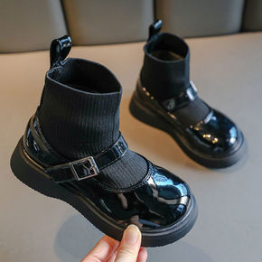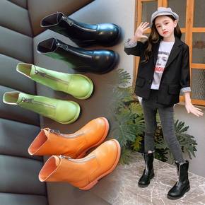 女童靴子单靴2021秋冬新款童靴时尚儿童英伦风加绒...