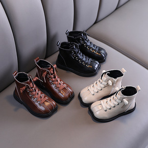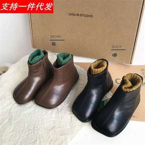 儿童方头皮靴短靴女宝宝公主单鞋韩版复古2021秋季...