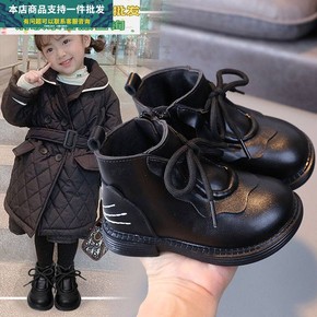 女童马丁靴2021新款秋冬季加绒皮靴中大童短靴男童...