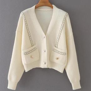 春秋款小香风短款外套小个子上衣女装宽松开衫领甜美针...