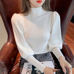 秋冬新款甜美内搭针织衫薄款半高领打底衫洋气木耳边毛...
