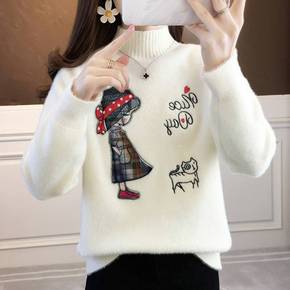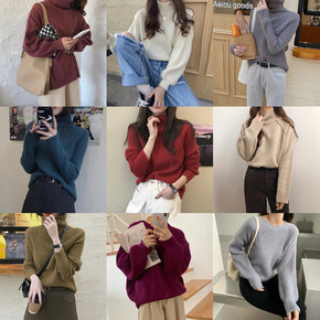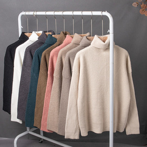 冬季新款加厚山羊绒衫女式半高领韩版宽松打底衫慵懒针...