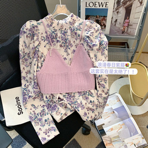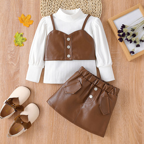 2022新品女童套装气质半高领上衣+吊带小背心+皮...