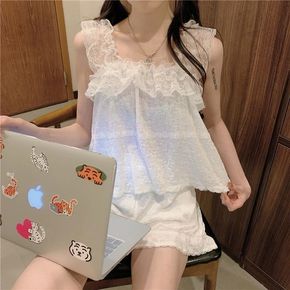 产品类别:套装 面料名称:雪纺 风格:甜美 款式:纯色、蕾丝花边 主面料成分:聚酯纤维(涤纶...