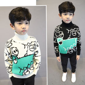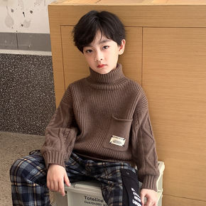 男童高领毛衣秋冬新款2021中大童加厚保暖套头打底...