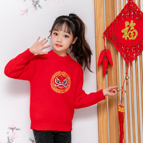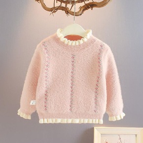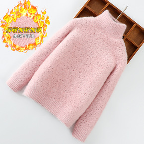 男女童水貂绒毛衣高领套头2021秋冬款儿童加厚男女...