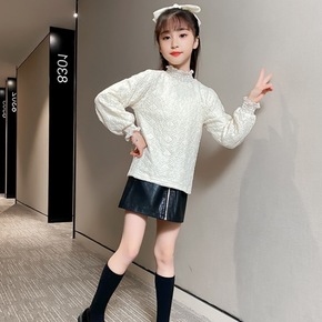 儿童双面德绒打底衫中大童木耳高领长袖T恤女童秋冬厚...