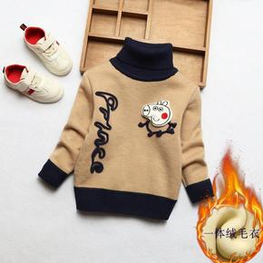 儿童加绒加厚毛衣男童针织衫女孩秋冬新款保暖上衣男孩...