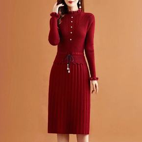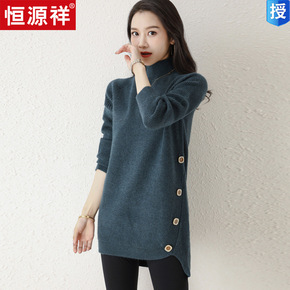 恒源祥羊毛衫女2022秋冬中长款针织打底连衣裙洋气...