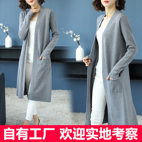 2022秋冬季装新款韩版中长款加厚加绒针织衫开衫女...