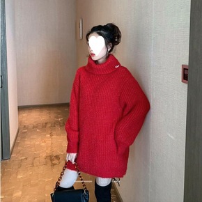 2022秋冬季新款慵懒风中长款宽松高领针织衫毛衣女...