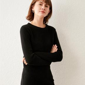 中长款毛衣女修身纯色包臀裙内搭上衣圆领紧身打底针织...