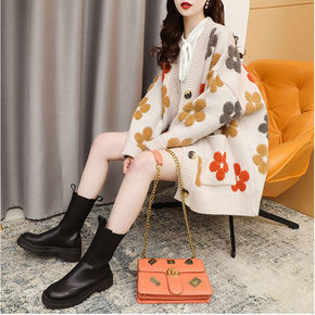 中长款毛衣开衫女外套2022春秋新款宽松韩版学生百...