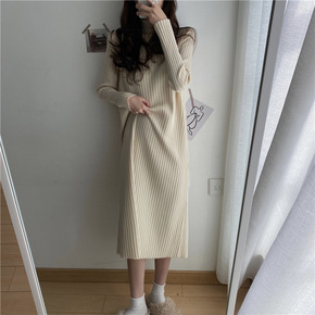 控3 秋冬新款加厚中长款毛衣裙子半高领针织连衣裙女...
