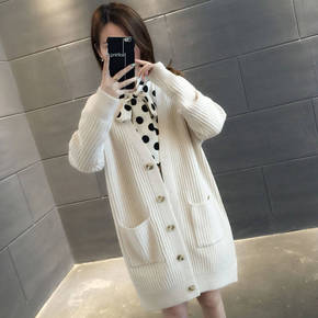 韩版中长款很仙的外套毛衣女宽松加长加厚新款春装学生...